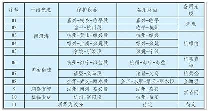 為了滿足浙江電信對(duì)線路通信保障、干線傳輸電路可用率指標(biāo)的要求。浙江電信的光保護(hù)工程采用OLP系列光線路自動(dòng)切換保護(hù)器,利用這些設(shè)備和冗余光纜線路,選擇杭福貴成光纜、滬金南穗光纜、南沿海光纜、寧杭光纜等11個(gè)中繼段中相適應(yīng)的省網(wǎng)系統(tǒng),構(gòu)建光纖光纜保護(hù)網(wǎng)絡(luò),實(shí)行1:1方式的物理保護(hù),采用DCN網(wǎng)絡(luò)進(jìn)行監(jiān)控管理。系統(tǒng)可以實(shí)現(xiàn)如下功能:a)自動(dòng)切換功能:主用路由光纖阻斷,自動(dòng)切換至備用路由,保證通信業(yè)務(wù)無(wú)阻斷;還可根據(jù)具體線路情況及需要設(shè)置成可恢復(fù)模式的自動(dòng)返回功能:即當(dāng)主用路由線路恢復(fù)正常時(shí)自動(dòng)切換恢復(fù)至主用路由線路的功能。b)檢修調(diào)度功能:在主用路由光纖正常的情況下,可由網(wǎng)管或設(shè)備面板發(fā)出指令調(diào)度切換工作路由,保證通信業(yè)務(wù)無(wú)中斷;c)主備纖插損監(jiān)測(cè)功能:可實(shí)時(shí)監(jiān)測(cè)主用和備用路由的線路插損狀況,并根據(jù)設(shè)定的告警門限給出告警提示。d)掉電、上電(600627,股吧)保持功能:切換盤掉電或上電,不影響工作線路狀態(tài),保證系統(tǒng)正常工作;并具備熱插拔功能。工程采用的光纖線路保護(hù)設(shè)備OLP每一對(duì)的介入損耗為小于3.0dB,倒換保護(hù)時(shí)間小于30.0ms。被保護(hù)的11個(gè)中繼段以及相應(yīng)的備用線路如表1所示,采用11套線路保護(hù)設(shè)備,其中4U規(guī)格機(jī)架1臺(tái),機(jī)架上安裝有4個(gè)光纖線路切換單元盤,1U規(guī)格設(shè)備18臺(tái),其中2臺(tái)作為本次項(xiàng)目的備品。各站點(diǎn)安裝設(shè)備以及工程示意圖如圖1所示。