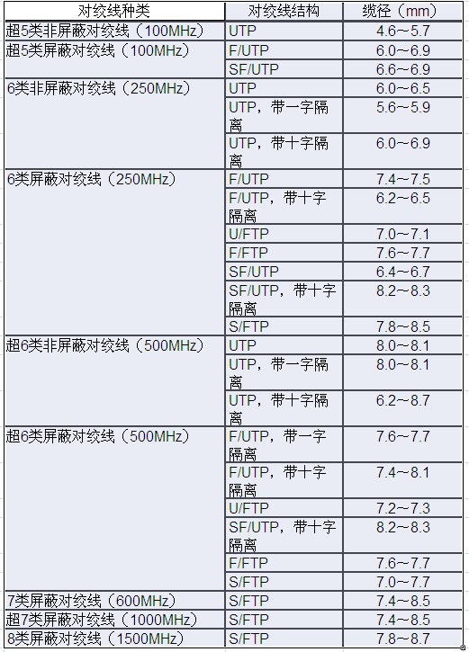 2. 4對(duì)8芯對(duì)絞電纜徑統(tǒng)計(jì)表